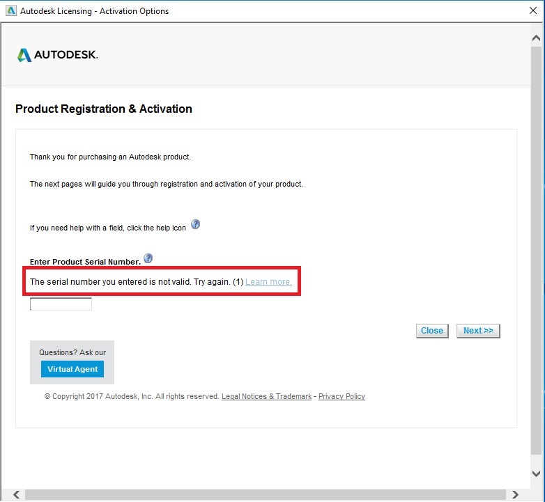 The serial number you entered is not valid. Try again. (1) Autodesk